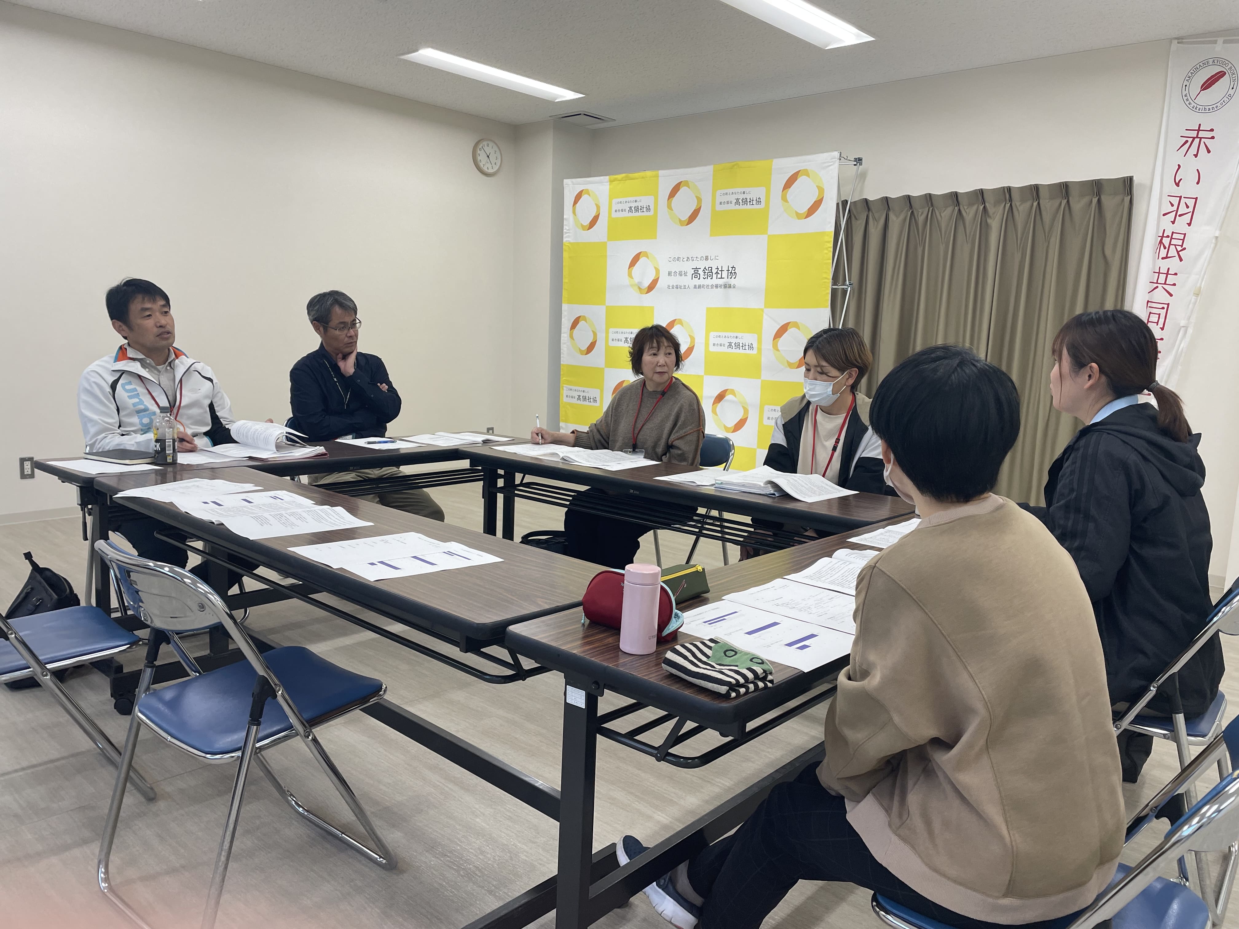 今日は、11月16日(日)に開催した社協まつりの振り返りとして 実行委員会が集まりましたよ。 職員によるアンケート調査を基に、課題点を次年度改善するため 協議したんです。 もちろん社協まつりは大盛況で終えることができましたが、職員としての 改善点はまだまだあり、もっと良い社協まつりになるよう意見が飛び交いました。