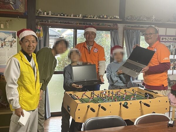 今日は、高鍋舞鶴ライオンズクラブ様よりパソコン2台と サッカーボートゲームをまちなかコラボへクリスマスプレゼントとして 贈呈してくださいましたよ!! 子ども達も歓喜の嵐!! サッカーボードゲームは、大声上げて夢中に遊んでいました!! とても豪華なクリスマスプレゼントが届いたものです!!
