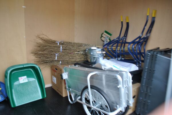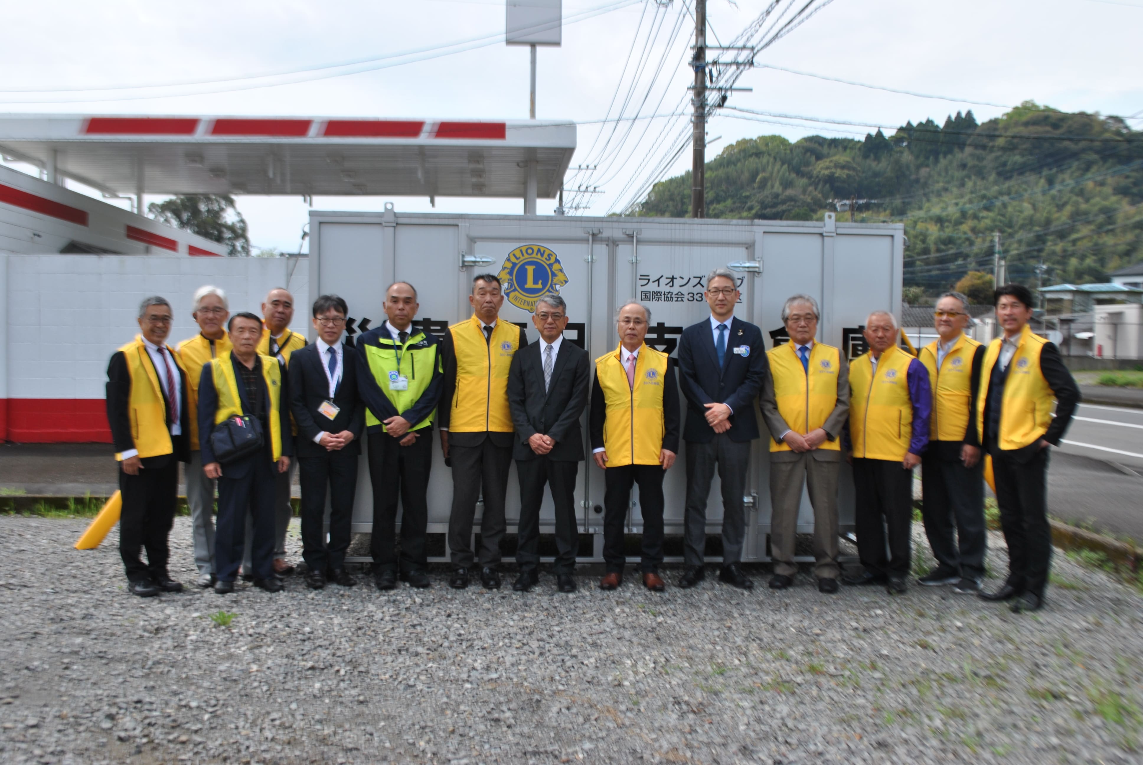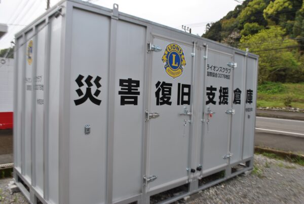 ライオンズクラブさんがコンテナに災害ボランティア用の資機材を準備され、